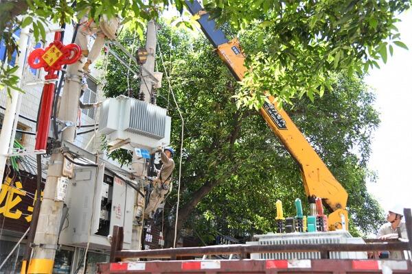 本網(wǎng)訊 7月9日上午,在云霄縣南大街,國網(wǎng)云霄縣供電公司組織施工人員克服炎熱天氣,加緊對(duì)10千伏木材支線的保險(xiǎn)配變進(jìn)行增容改造,全力保障轄區(qū)群眾在夏季期間用好電。