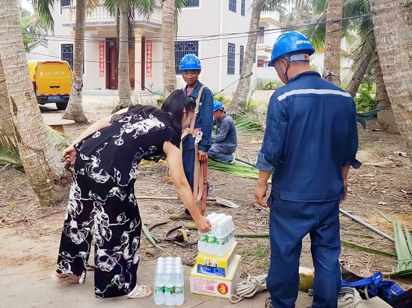 “感謝你們千里迢迢從貴州來支援我們,幫助我們搶修復(fù)電,太感動(dòng)了!”海南省文昌市東郊鎮(zhèn)文龍村村民說到。村民們看著搶修人員辛苦的模樣,自發(fā)給大家送來了水和飲料解渴降溫,還為搶修人員帶路,加快搶修進(jìn)度。