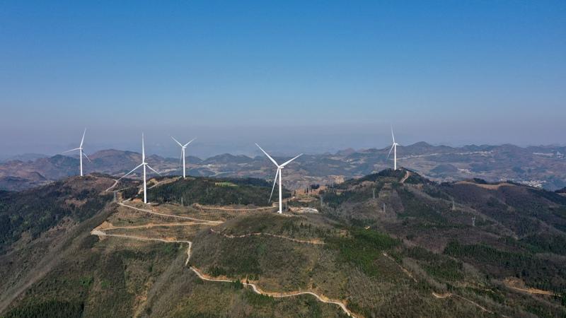 據(jù)了解,興義白碗窯風(fēng)電場位于貴州省黔西南州興義市白碗窯鎮(zhèn)高山上,共裝有10臺風(fēng)機,裝機容量31.6兆瓦,風(fēng)資源充足時,單臺風(fēng)機轉(zhuǎn)一圈大約能發(fā)電5千瓦時,大風(fēng)天氣一天發(fā)電量可達(dá)6萬千瓦時。2024年,該風(fēng)電場總發(fā)電量超5600萬千瓦時,經(jīng)110千伏花月變和110千伏木賈變接入南方電網(wǎng)。