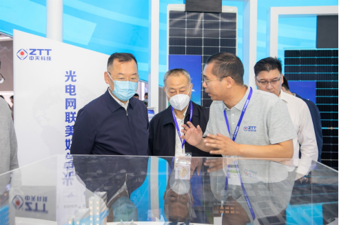 國華投資、江西電建等單位高層領(lǐng)導一行先后蒞臨中天科技展臺,詳細了解中天科技新能源產(chǎn)業(yè)的發(fā)展情況。