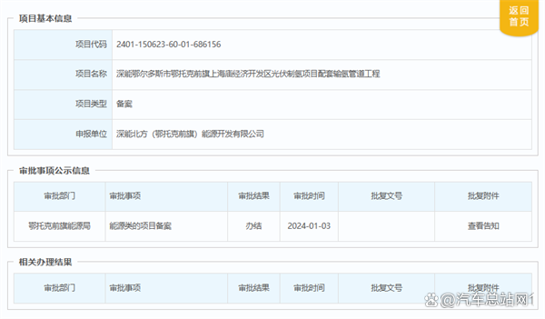 近日,深能鄂爾多斯市鄂托克前旗上海廟經(jīng)濟(jì)開發(fā)區(qū)光伏制氫項(xiàng)目配套輸氫管道工程獲批,鄂托克前旗能源局就該項(xiàng)目發(fā)布《項(xiàng)目備案告知書》。本項(xiàng)目屬于深能鄂爾多斯市鄂托克前旗上海廟經(jīng)濟(jì)開發(fā)區(qū)光伏制氫項(xiàng)目配套輸氫管道工程,新建一條DN150mm輸氫管線,供氣流量約5000標(biāo)方每小時(shí),管線長度約2km,起于深能北方(鄂托克前旗)能源開發(fā)有限公司鄂爾多斯市鄂托克前旗上海廟經(jīng)濟(jì)開發(fā)區(qū)光伏制氫項(xiàng)目,止于潤陽悅達(dá)光伏裝備制造全產(chǎn)業(yè)鏈科技示范項(xiàng)目。