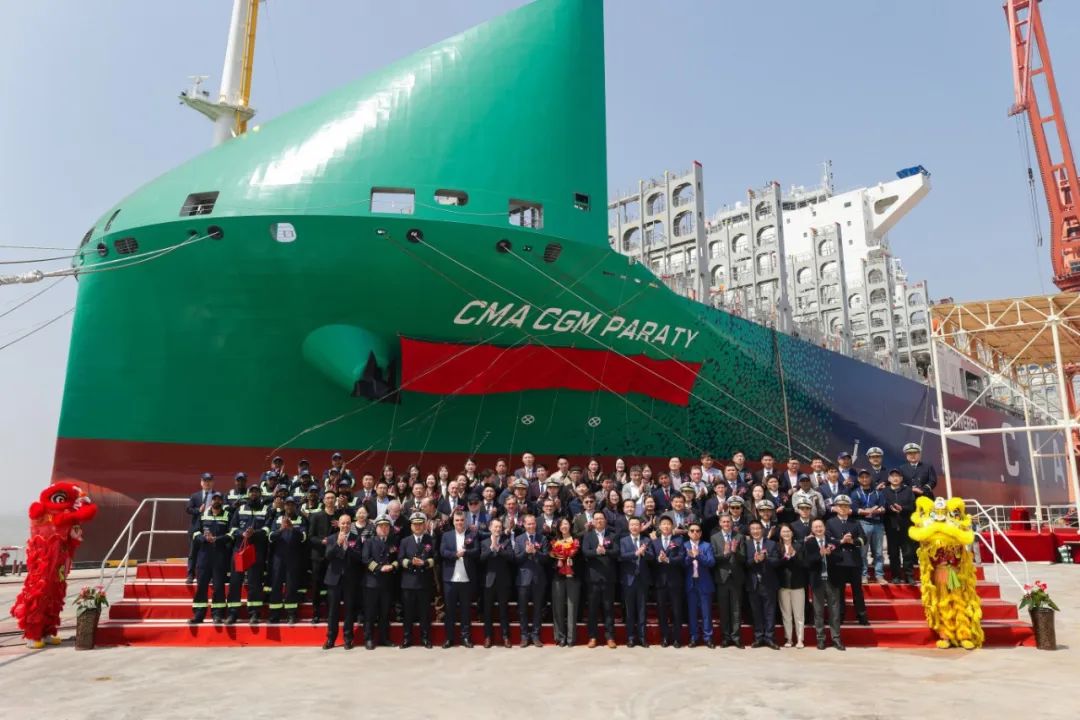 4月9日,由中國(guó)船舶集團(tuán)有限公司旗下滬東中華造船(集團(tuán))有限公司聯(lián)合中國(guó)船舶工業(yè)貿(mào)易有限公司為法國(guó)達(dá)飛集團(tuán)建造的13000TEU液化天然氣(LNG)雙燃料動(dòng)力大型集裝箱船系列3號(hào)船“CMA CGM PARATY”號(hào),在中船長(zhǎng)興造船基地命名交付,南美洲東海岸航線又將新添一艘中國(guó)“智”造的大型雙燃料動(dòng)力集裝箱船。