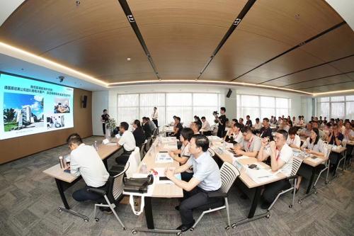 出席本次交流會(huì)有丹灶鎮(zhèn)政府領(lǐng)導(dǎo)、高校領(lǐng)導(dǎo)嘉賓團(tuán)及康士柏高層領(lǐng)導(dǎo)超過115人,在交流會(huì)議上康士柏首席科學(xué)家隋教授深入講解了整體行業(yè)的技術(shù)創(chuàng)新和行業(yè)發(fā)展。會(huì)議后參觀了康士柏“光伏制儲(chǔ)氫熱電聯(lián)供示范項(xiàng)目”、“新能源汽車檢測(cè)線項(xiàng)目”及”汽車運(yùn)動(dòng)項(xiàng)目”。隨后交流團(tuán)同乘氫能公交參觀丹灶仙湖氫能中心,試駕氫能單車,實(shí)地感受新能源技術(shù)和氫能應(yīng)用的成果。
