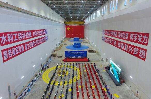大藤峽水利樞紐工程是國務(wù)院確定的172項(xiàng)節(jié)水供水重大水利工程的標(biāo)志性工程,集防洪、航運(yùn)、發(fā)電、水資源配置、灌溉等綜合效益于一體,是珠江流域關(guān)鍵控制性水利樞紐,被喻為珠江上的“三峽工程”。電站總裝機(jī)容量160萬千瓦,共安裝8臺單機(jī)容量20萬千瓦的水輪發(fā)電機(jī)組,左岸廠房3臺,右岸廠房5臺,為國內(nèi)最大的軸流轉(zhuǎn)漿式水輪發(fā)電機(jī)組。