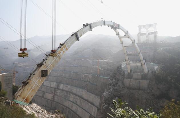 近日,陜西東莊水利樞紐涇河大橋主拱合龍。該橋是東莊水利樞紐工程對外交通的重要節(jié)點工程,全長284米,為中承式空間Y型鋼箱拱橋,橋梁結(jié)構(gòu)在平面和立面均呈現(xiàn)Y型結(jié)構(gòu),在國內(nèi)尚屬首例。此次合龍拱段長10.72米,高3.075米,重28.4噸,橋梁主拱最高處距離地面約270米。
