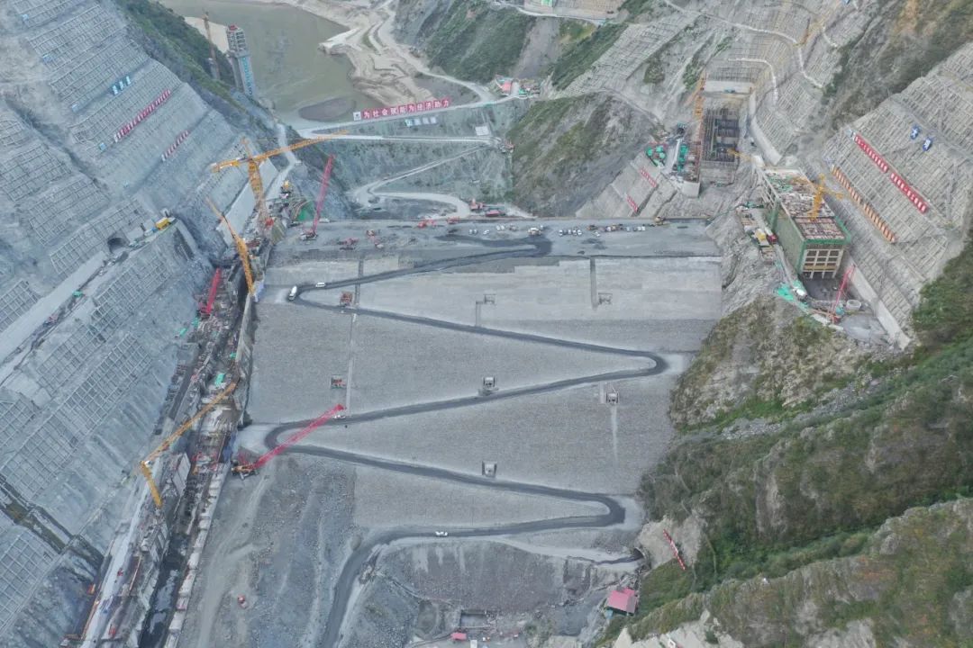 金川水電站大壩壩體坐落于最大深度達65米的深厚覆蓋層上,趾板建造于強荷巖體上,兩岸邊坡和左岸地下洞室群地質(zhì)條件復雜,工程建設質(zhì)量要求高,難度大,工期緊張。施工過程中,項目部優(yōu)化施工組織和強化資源配置,加強現(xiàn)場施工組織協(xié)調(diào),在大壩填筑工程高峰期,單月填筑強度達60萬立方米;面對地質(zhì)條件復雜、深厚覆蓋層等困難的挑戰(zhàn),項目部通過反復試驗與專家論證,實施科學的強夯加固方案,有效提高壩基的承載力,降低沉降量,確保壩體的穩(wěn)定性。