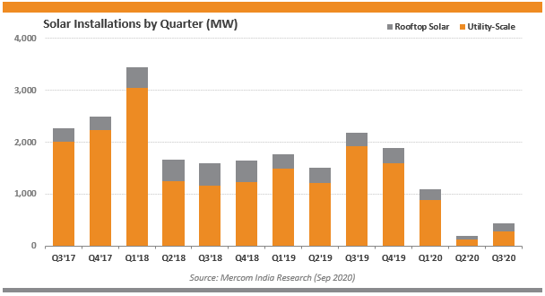 隨著疫情導(dǎo)致的全國范圍封鎖開始逐漸放寬,印度經(jīng)濟也開始緩慢復(fù)蘇。太陽能行業(yè)也因此受到積極的影響,三季度裝機容量明顯好于上一季度。但是,該行業(yè)仍然有很長的路要走,四季度的部分項目調(diào)試日期已被批準(zhǔn)延期至2021年上半年。