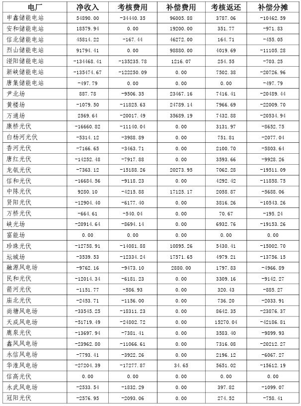 根據(jù)華東區(qū)域“兩個細(xì)則”規(guī)則要求,國網(wǎng)安徽省電力有限公司完成了2023年10-12月直調(diào)電廠并網(wǎng)運(yùn)行考核、輔助服務(wù)補(bǔ)償統(tǒng)計計算,并向我局報送了并網(wǎng)運(yùn)行考核及輔助服務(wù)補(bǔ)償情況。其中,吉泉直流配套跨省跨區(qū)新建火電機(jī)組調(diào)試運(yùn)行期差額資金共計8882813.74元,納入12月輔助服務(wù)補(bǔ)償。2023年10-12月安徽電網(wǎng)發(fā)電廠輔助服務(wù)補(bǔ)償及并網(wǎng)運(yùn)行考核費用結(jié)算表詳見附件,現(xiàn)予公示。如有不同意見,可于3月1日前向我局反映。