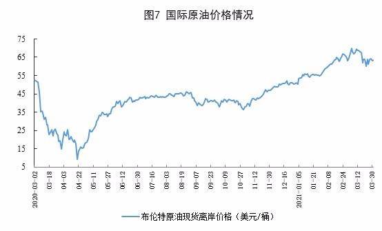 原油進(jìn)口大幅增長(zhǎng),國(guó)際原油價(jià)格基本穩(wěn)定。3月份,進(jìn)口原油4966萬(wàn)噸,同比增長(zhǎng)20.8%;一季度,進(jìn)口原油13923萬(wàn)噸,同比增長(zhǎng)9.5%。3月31日布倫特原油現(xiàn)貨離岸價(jià)格為63.52美元/桶,比3月1日的64.56美元/桶下跌1.6%。