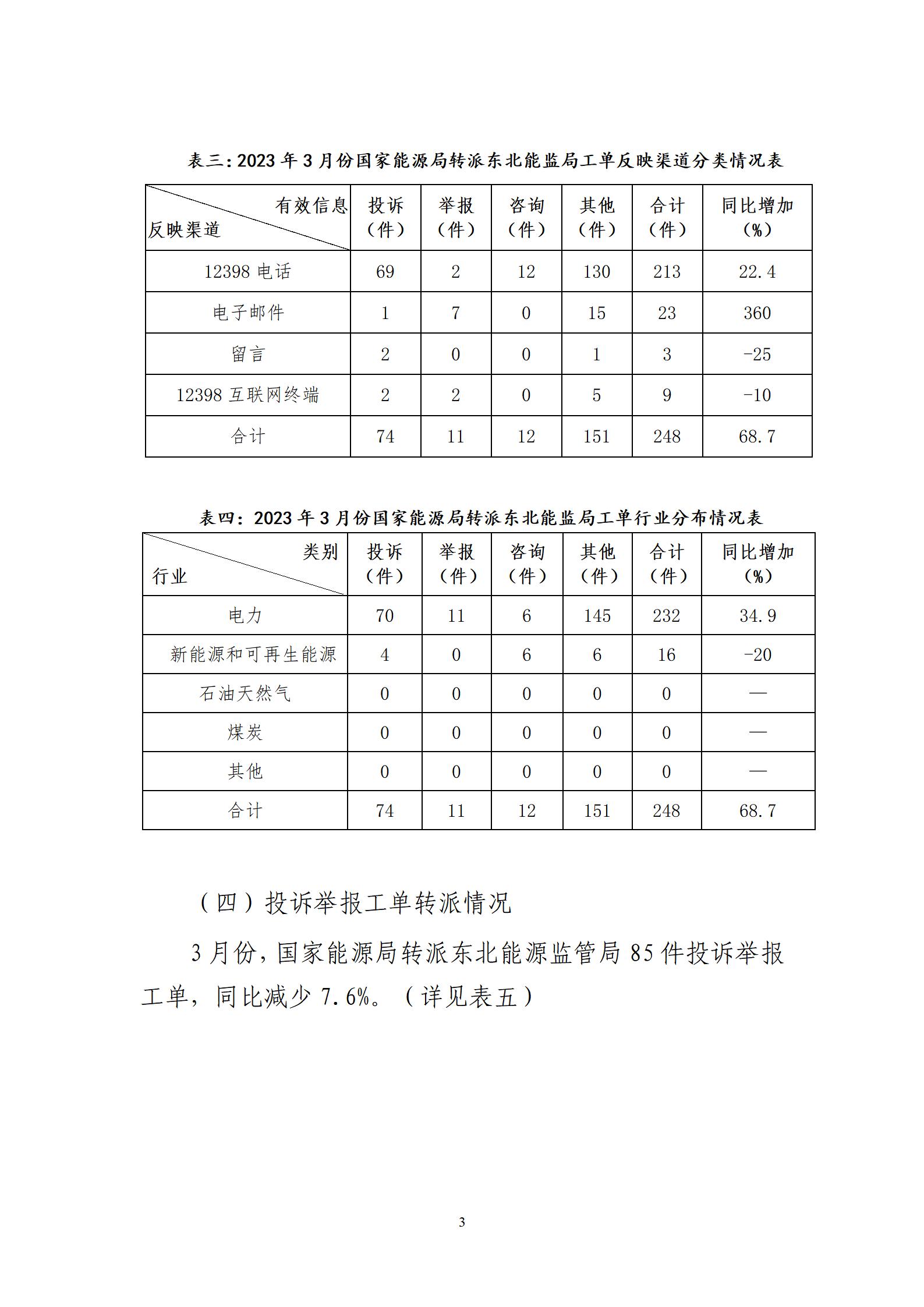 2023年3月份東北區(qū)域能源監(jiān)管投訴舉報辦理情況