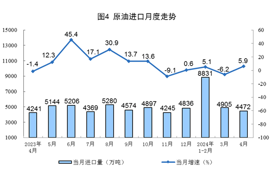 進(jìn)口數(shù)據(jù)來源于海關(guān)總署,其中2024年4月份數(shù)據(jù)為快訊數(shù)據(jù)。