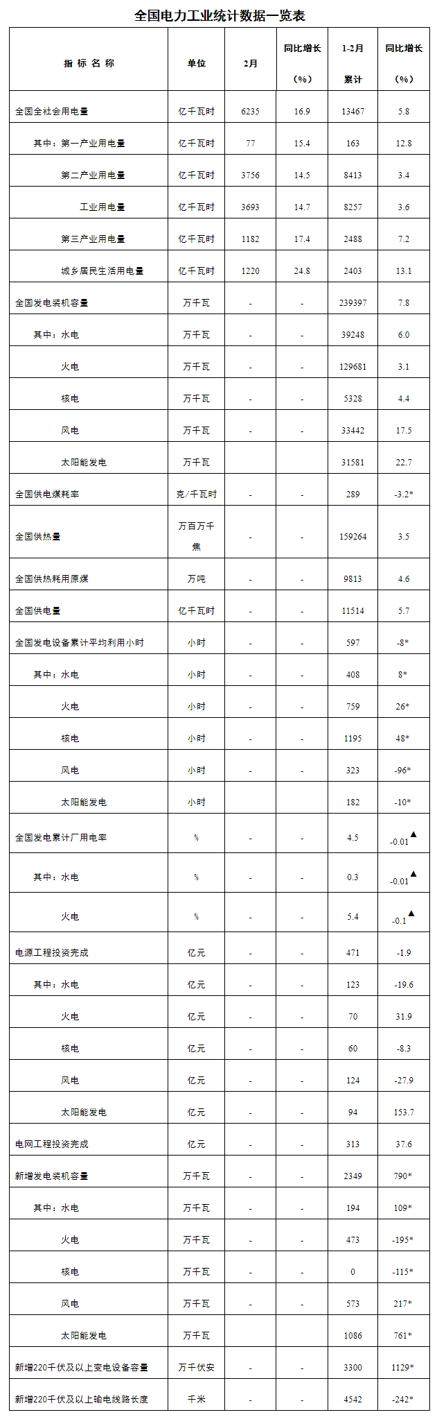 注:1.全社會用電量為全口徑數(shù)據(jù),全國供電量為調(diào)度口徑數(shù)據(jù)。2.“同比增長”列中,標(biāo)*的指標(biāo)為絕對量;標(biāo)▲的指標(biāo)為百分點(diǎn)。
