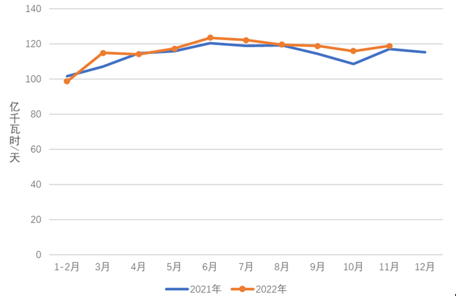 圖3 2021、2022年分月制造業(yè)日均用電量