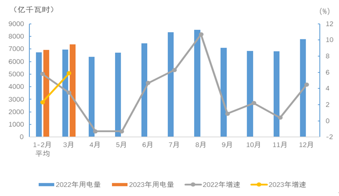 圖4 2022、2023年重點行業(yè)分月用電量情況