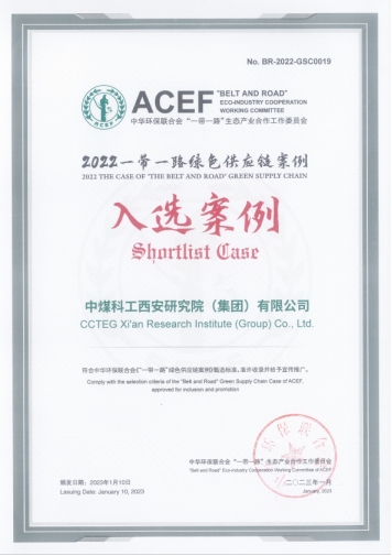 2023年,中國煤科西安研究院的“推動企業(yè)轉(zhuǎn)型升級 促進(jìn)產(chǎn)業(yè)綠色發(fā)展”案例成功入選“一帶一路”綠色供應(yīng)鏈案例。
