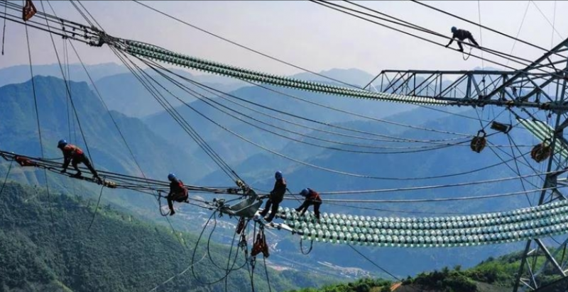 青海至河南±800千伏特高壓工程施工現(xiàn)場(chǎng),2020年