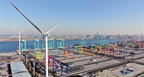 12月15日,隨著天津港北疆港區(qū)C段智能化集裝箱碼頭北側的兩臺風機葉片緩緩啟動,全球首個零碳碼頭智慧綠色能源系統(tǒng)投用,并在天津港并網(wǎng)發(fā)電。