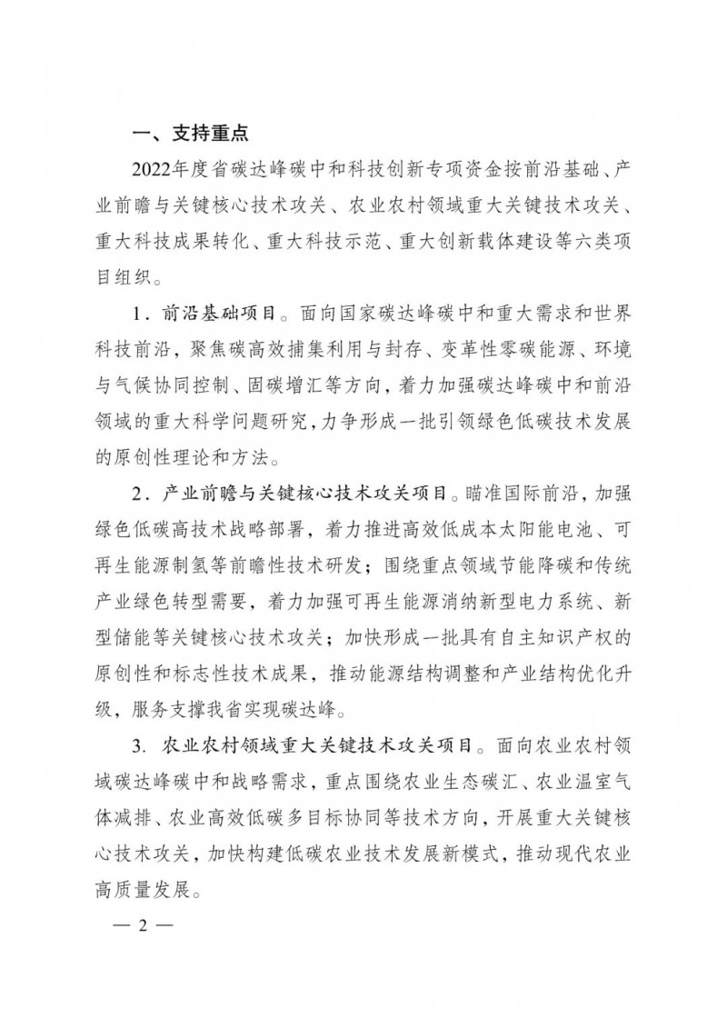 近日,江蘇省科學(xué)技術(shù)廳及財(cái)政廳發(fā)布《2022年度省碳達(dá)峰碳中和科技創(chuàng)新專項(xiàng)資金項(xiàng)目指南》。