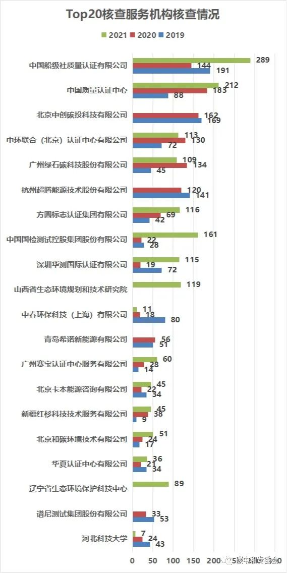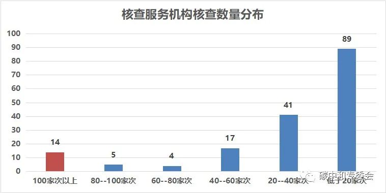 據(jù)上海青悅統(tǒng)計(jì),在170家核查服務(wù)機(jī)構(gòu)中,核查超百家次的核查服務(wù)機(jī)構(gòu)共14家。單次核查最多的核查服務(wù)機(jī)構(gòu)為中國(guó)船級(jí)社質(zhì)量認(rèn)證有限公司,核查數(shù)量達(dá)624家次。