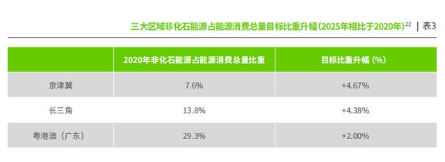 三大區(qū)域非化石能源占比。綠色和平供圖