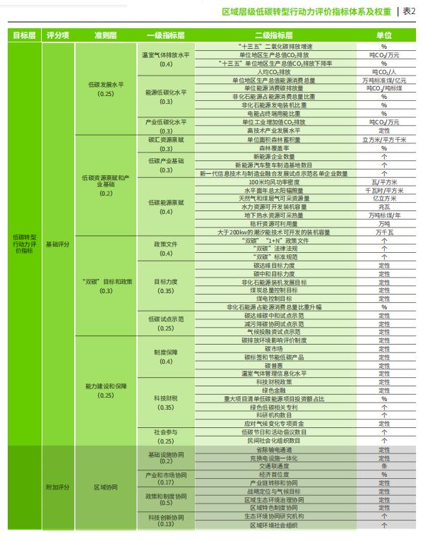 區(qū)域?qū)蛹壍吞嫁D(zhuǎn)型行動力評價指標(biāo)體系及權(quán)重。綠色和平供圖