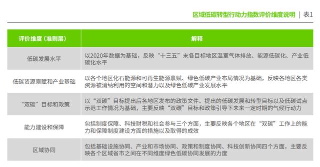 區(qū)域低碳轉(zhuǎn)型行動力指數(shù)評價維度說明。綠色和平供圖