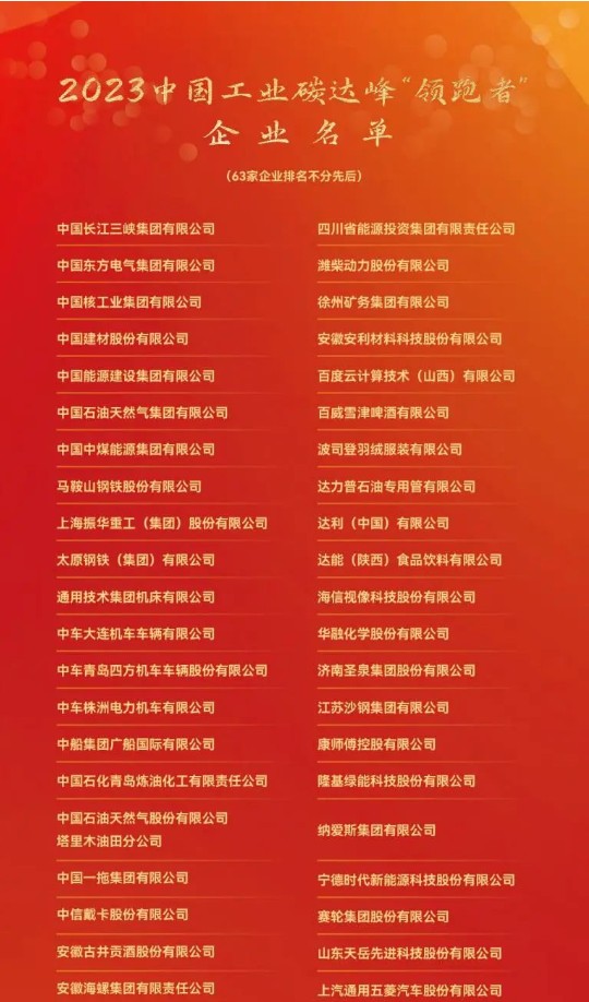 2023中國(guó)工業(yè)碳達(dá)峰“領(lǐng)跑者”企業(yè)名單