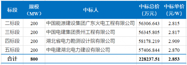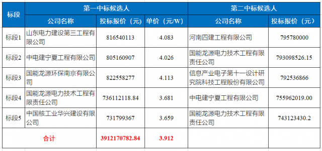 “寧湘直流”配套新能源基地中衛(wèi)3GW一期1GW,5個標段的開標結(jié)果如下表所示。