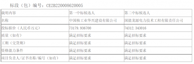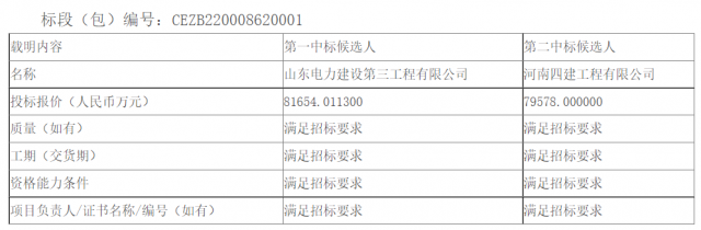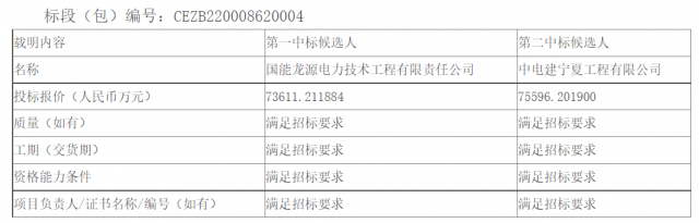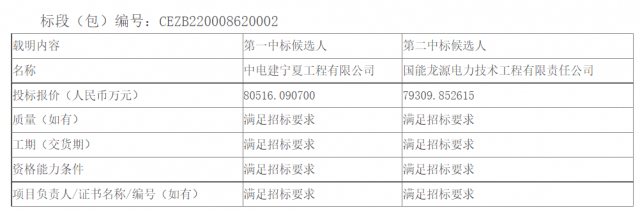11月3日,龍源電力寧夏龍源公司“寧湘直流”配套新能源基地中衛(wèi)300萬千瓦光伏復(fù)合項目(一期100萬千瓦)光伏區(qū)EPC總承包公開招標中標候選人公示,中標結(jié)果如下表所示。
