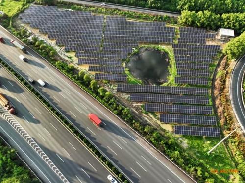 高速互通光伏項(xiàng)目的應(yīng)用,有效挖掘了交通資源的利用潛力,而在互通區(qū)錯落有致的綠植與縱橫交錯的高速公路之間,整齊排列的光伏板鑲嵌其中,也增添了一處別樣景觀。