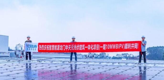 日前,由廣東惠電投綜合能源服務有限公司旗下惠州市智慧綜合能源服務有限公司(以下簡稱“智慧能源公司”)投資、廣西英辰新能源技術(shù)有限公司(以下簡稱“英辰新能源”)承建的智慧能源龍門中天元一期10兆瓦BIPV項目并網(wǎng)發(fā)電,預計首年發(fā)電量為1033萬千瓦時,首年利用小時數(shù)為1039.12小時,25 年累計發(fā)電量25825萬千瓦時,將對龍門縣工業(yè)經(jīng)濟高質(zhì)量發(fā)展起到示范和促進作用。
