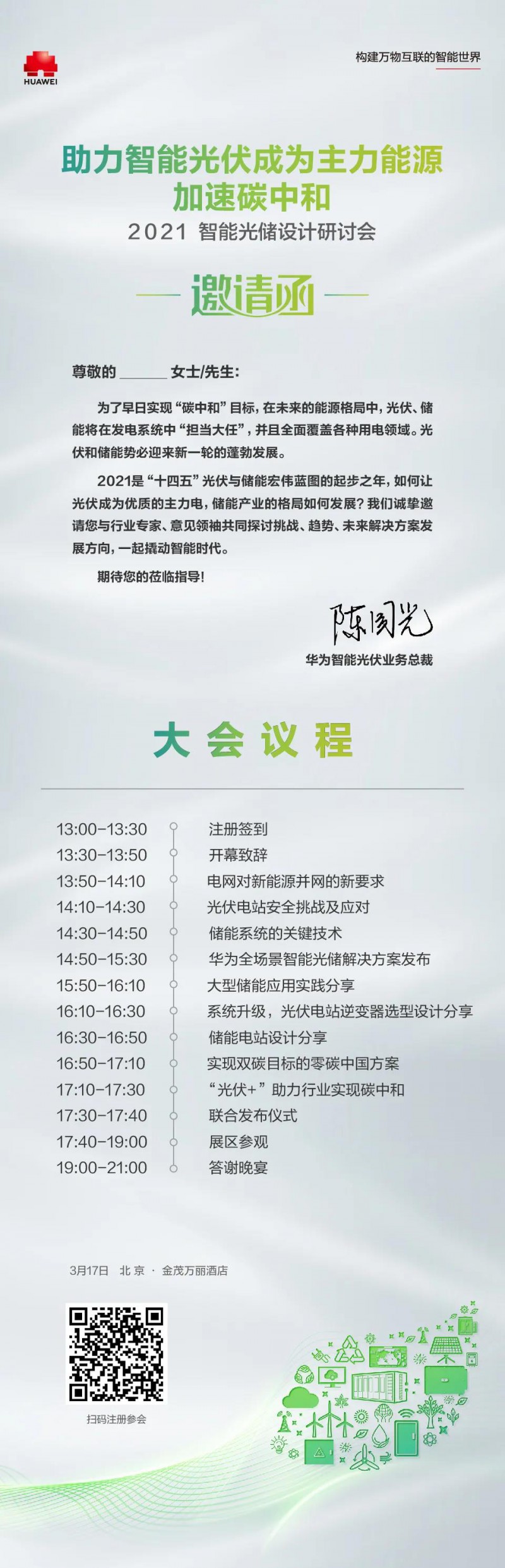 2021是“十四五”光伏與儲能宏偉藍圖的起步之年,讓光伏發(fā)電可儲可控,已成為能源轉(zhuǎn)型的必然選擇。如何助力智能光伏成為主力能源,促進儲能、光伏產(chǎn)業(yè)協(xié)同良性發(fā)展,是實現(xiàn)我國碳中和目標的重中之重。為了盡快迎接零碳時代的到來,3月17日,2021智能光儲設計研討會即將在北京舉辦,掃描圖片下方二維碼即可報名參會!