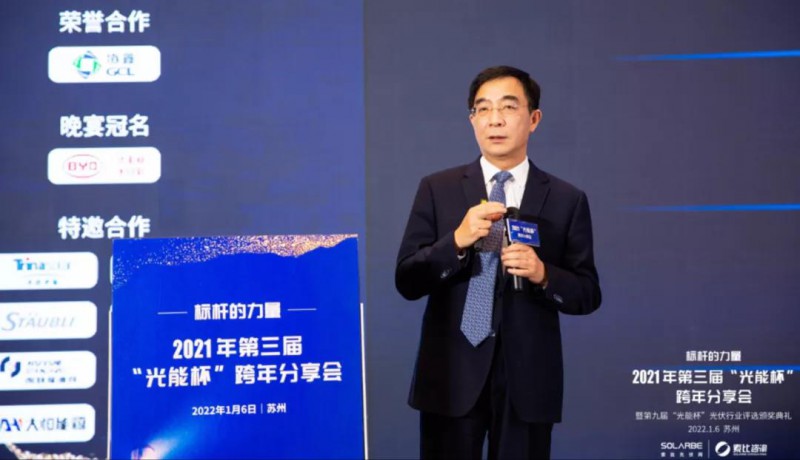1月6日,備受矚目的2021年“光能杯”評(píng)選活動(dòng)在蘇州盛大開(kāi)啟,中環(huán)股份副董事長(zhǎng)兼總經(jīng)理沈浩平先生被授予2021年度“光能杯”光伏“燈塔獎(jiǎng)”,國(guó)家應(yīng)對(duì)氣候變化戰(zhàn)略研究和國(guó)際合作中心首任主任李俊峰先生為其現(xiàn)場(chǎng)頒獎(jiǎng)。