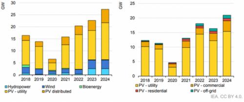 2022年,印度安裝的公用事業(yè)規(guī)模的光伏系統(tǒng)裝機容量(主要由拍賣授予的容量組成)達到創(chuàng)紀(jì)錄的14GW,占該國可再生能源裝機容量增長的三分之二以上。然而,到2023年,較低的拍賣量和供應(yīng)鏈挑戰(zhàn)表明,這一增長可能會放緩近20%,而2024年可能會復(fù)蘇。