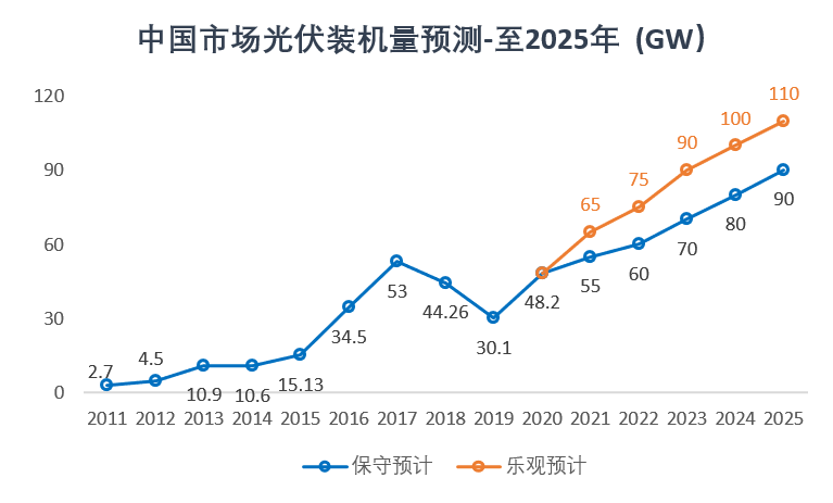 2020年,中國(guó)地區(qū)光伏裝機(jī)量達(dá)到 48.2 GW,遠(yuǎn)超過之前的預(yù)期