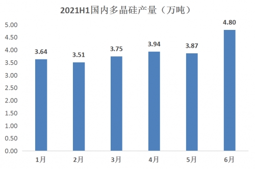 從硅業(yè)分會2021年上半年預計的硅片產(chǎn)量來看,硅料需求量合計約29.8萬噸,而國內供給量約為28.1萬噸,供給與需求大致處于緊平衡狀態(tài)。硅片產(chǎn)能的超前超量釋放導致硅料總體需求激增,硅料企業(yè)上半年基本都是滿產(chǎn)運營狀態(tài),部分硅料企業(yè)個別月份綜合開工率更是高達111%。