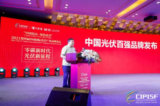 國務(wù)院原參事、中國可再生能源學(xué)會理事長石定寰發(fā)布“中國光伏百強(qiáng)品牌”。