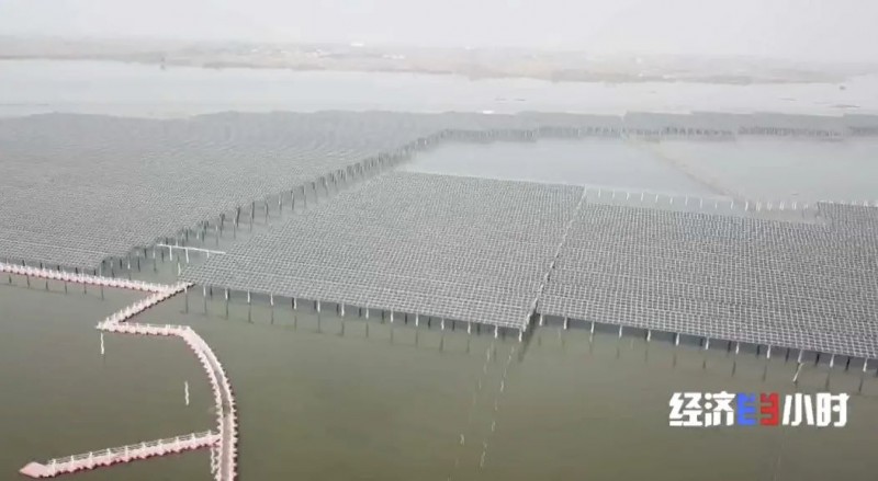 宿遷市泗洪縣天崗湖面上有一片一眼望不到頭的光伏電站,光伏板下的湖面就是天崗湖鄉(xiāng)村民們養(yǎng)魚(yú)的地方。