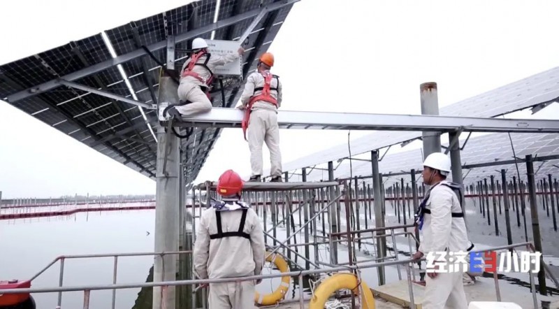 這個(gè)漁光一體光伏電站,光伏板能遮擋陽(yáng)光,降低水面溫度,減少水分蒸發(fā)的同時(shí)抑制藻類生長(zhǎng),為魚(yú)蝦提供更好的生長(zhǎng)環(huán)境。