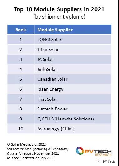 2021年,前10名的出貨總量接近150GW。如果有人仍認(rèn)為整個行業(yè)的規(guī)模在140-160GW的話(就像最近第三方機構(gòu)的許多錯誤預(yù)測值告訴我們的那樣),那么請再考慮一下。