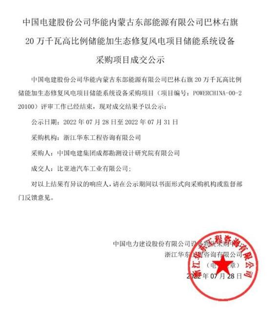 近日,中國電建集中采購平臺發(fā)布《中國電建股份公司華能內(nèi)蒙古東部能源有限公司巴林右旗20萬千瓦高比例儲能加生態(tài)修復(fù)風(fēng)電項(xiàng)目儲能系統(tǒng)設(shè)備采購項(xiàng)目成交公示》的公告。