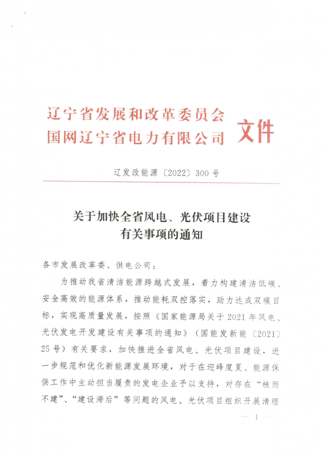 近日,遼寧省發(fā)展和改革委員會(huì)、國(guó)網(wǎng)遼寧省電力有限公司發(fā)布了《關(guān)于加快全省風(fēng)電、光伏項(xiàng)目建設(shè)有關(guān)事項(xiàng)的通知》。