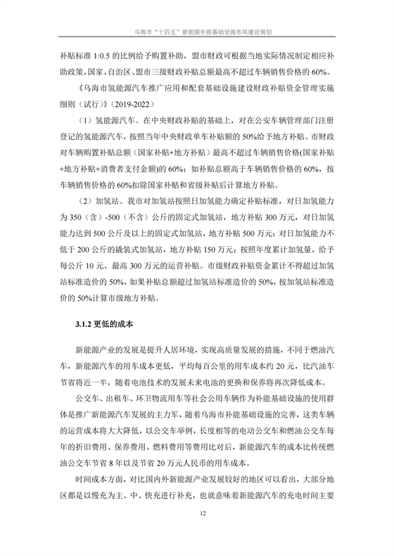 日前,內(nèi)蒙古自治區(qū)烏海市能源局印發(fā)《烏海市“十四五”新能源補(bǔ)能基礎(chǔ)設(shè)施布局建設(shè)規(guī)劃》,《規(guī)劃》提出發(fā)展目標(biāo):建設(shè)補(bǔ)能基礎(chǔ)設(shè)施共計(jì)194座,包含11座四位一體綜合站,加油加氫充電綜合站8座,加油加氣加氫綜合站1座,充電換電綜合站18座,充電換電加氫綜合站2座,充電換電光伏儲(chǔ)能綜合站4座,充電光伏儲(chǔ)能綜合站6座,換電光儲(chǔ)綜合站2座,加氣充電綜合站3座,充電站86座,換電站52座,加氫站1座。