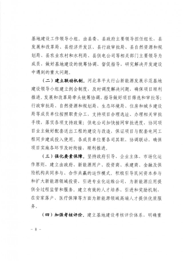 二、示范基地建設要認真落實國家及省委、省政府關于新能源發(fā)展的具體要求,以新能源產(chǎn)業(yè)發(fā)展鞏固脫貧攻堅成果,帶動縣域經(jīng)濟發(fā)展,助力阜平縣建設國家鄉(xiāng)村振興示范縣。