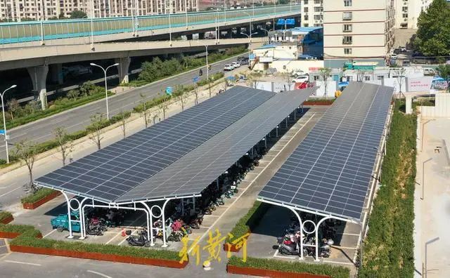 山東大學(xué)國(guó)家大學(xué)科技園停車(chē)場(chǎng)的車(chē)棚采用光伏一體化結(jié)構(gòu),光伏面板架設(shè)于停車(chē)位上方的鋼桁架上,以光伏電池板代替車(chē)棚頂面,既能避免車(chē)輛日曬雨淋,所發(fā)出的電力又能為園區(qū)、車(chē)棚提供照明,起到一舉多得的效果。車(chē)棚內(nèi)安裝了充電樁、儲(chǔ)能等配套設(shè)施,可以為電動(dòng)汽車(chē)、電動(dòng)自行車(chē)充電,實(shí)現(xiàn)了光儲(chǔ)充一體化,綠色低碳場(chǎng)景再添新貌,進(jìn)一步邁向智慧零碳園區(qū)。
