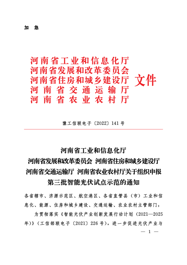 11月24日,河南省工信廳、發(fā)改委、住建廳、交通廳、農業(yè)廳等聯合下發(fā)《關于組織申報第三批智能光伏試點示范的通知》,對示范企業(yè)、示范項目予以支持,包括: