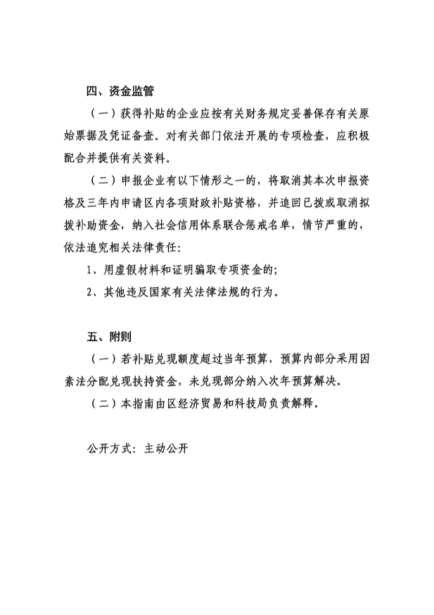為進(jìn)一步加強(qiáng)項(xiàng)目管理,提高補(bǔ)貼資金使用效率,區(qū)發(fā)展規(guī)劃和國(guó)土資源局將對(duì)獲得補(bǔ)貼的項(xiàng)目進(jìn)行績(jī)效評(píng)價(jià)。若發(fā)現(xiàn)騙取專項(xiàng)資金或其他違法違規(guī)行為,按《指南》相關(guān)規(guī)定處理。