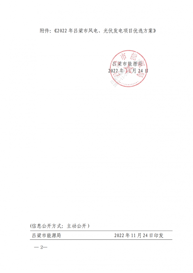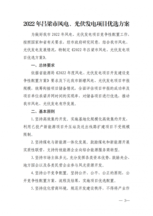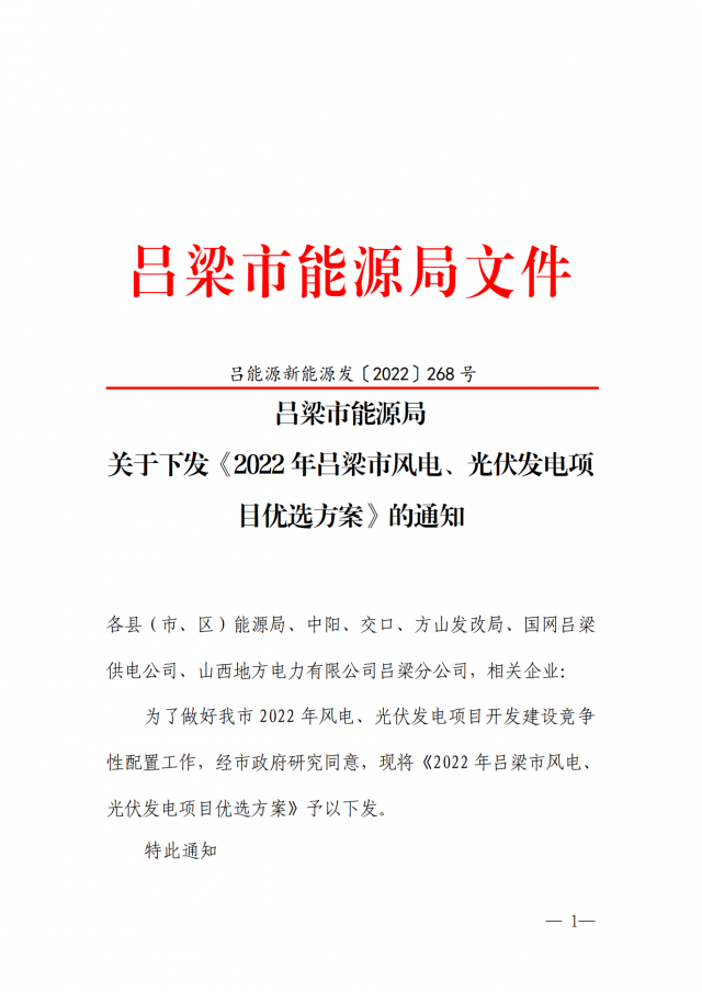 近日,山西呂梁市能源局發(fā)布關(guān)于《2022年呂梁市風(fēng)電、光伏發(fā)電項(xiàng)目?jī)?yōu)選方案》的通知。