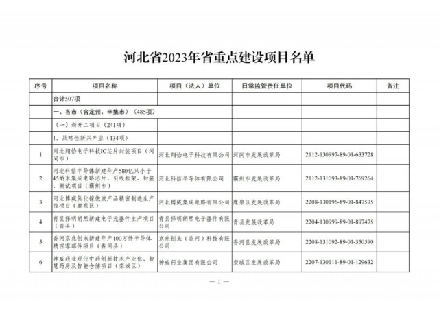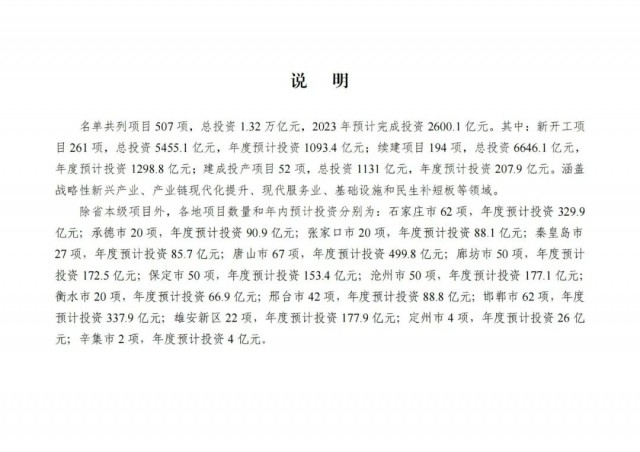 1月18日,河北省發(fā)改委發(fā)布了2023年省級重點建設(shè)項目名單,項目共計507項,總投資1.32萬億元,年度預(yù)計投資2600.1億元。其中涉及光伏項目為22項,10個為光伏電站項目,12個為光伏制造業(yè)。