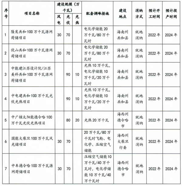 2022年8月24日,青海省能源局在“關(guān)于加強(qiáng)海南州清潔能源產(chǎn)業(yè)建設(shè)的建議”——省十三屆人民代表大會第七次會議第224014號建議答復(fù)的函上表示,省第二批大型風(fēng)電光伏基地取得重大進(jìn)展,7個項(xiàng)目、合計700萬千瓦納入第二批以沙漠、戈壁、荒漠地區(qū)為重點(diǎn)的大型風(fēng)電光伏基地建設(shè)項(xiàng)目清單,其中隆發(fā)共和100萬千瓦源網(wǎng)荷儲項(xiàng)目、中能建江蘇設(shè)計院/江蘇美科共和100萬千瓦源網(wǎng)荷儲項(xiàng)目、伏山共和100萬千瓦源網(wǎng)荷儲項(xiàng)目、中電建共和100萬千瓦光伏光熱項(xiàng)目共400萬落地海南州共和縣。